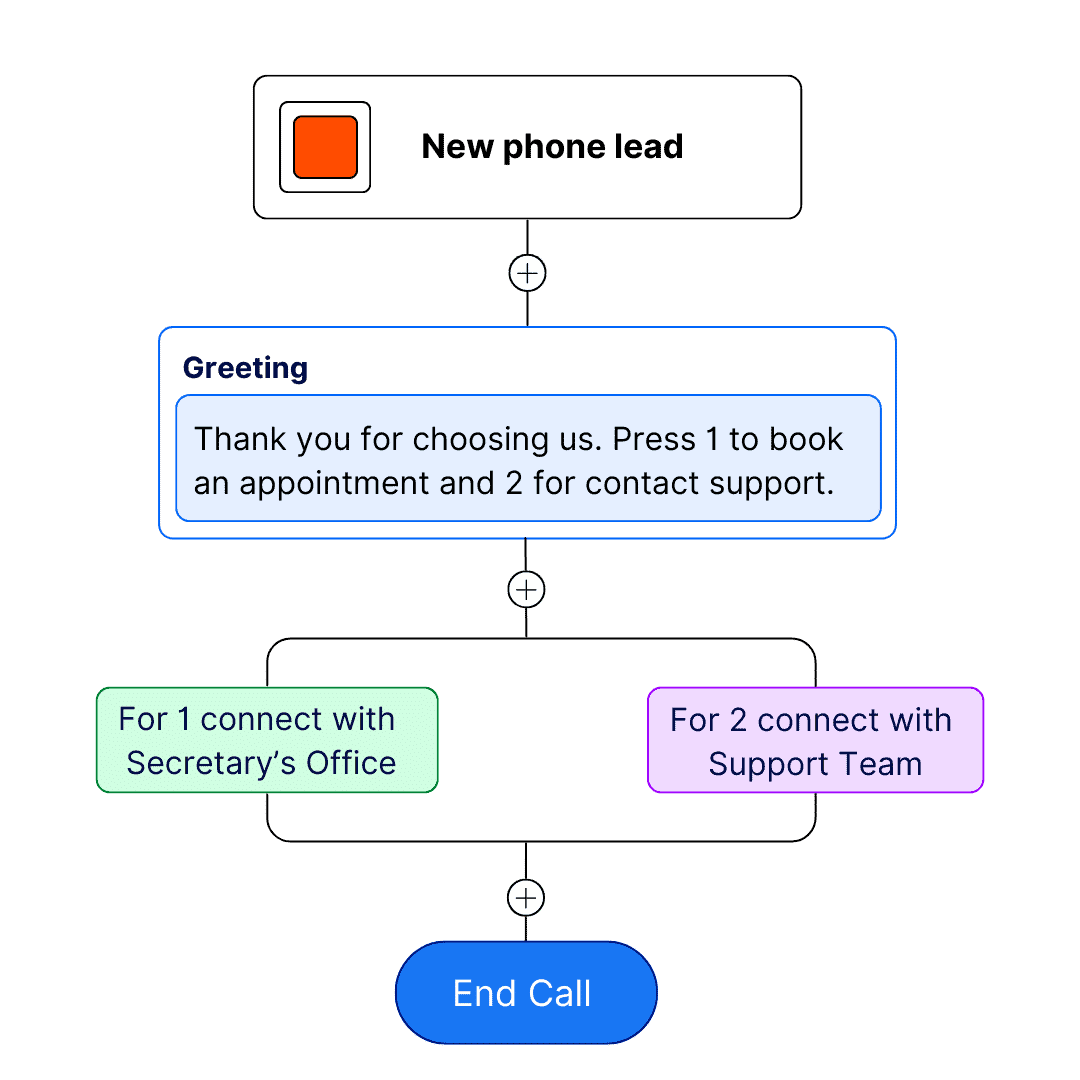 Build your custom call flows with the intuitive drag and drop editor – no code needed! – to more easily handle, capture and manage your phone leads.