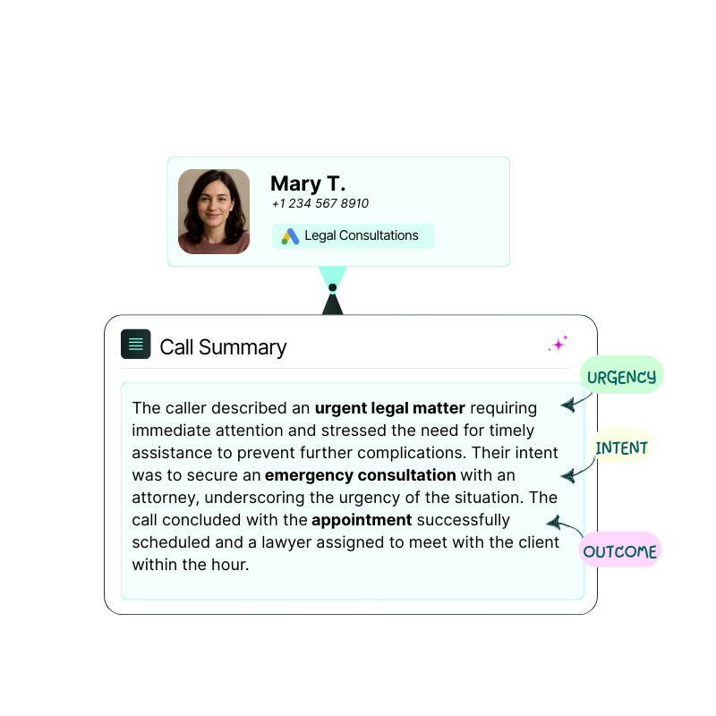 Skip the replay. Turn long conversations into concise, actionable summaries. Save hours, stay aligned, and never miss the context behind your leads.