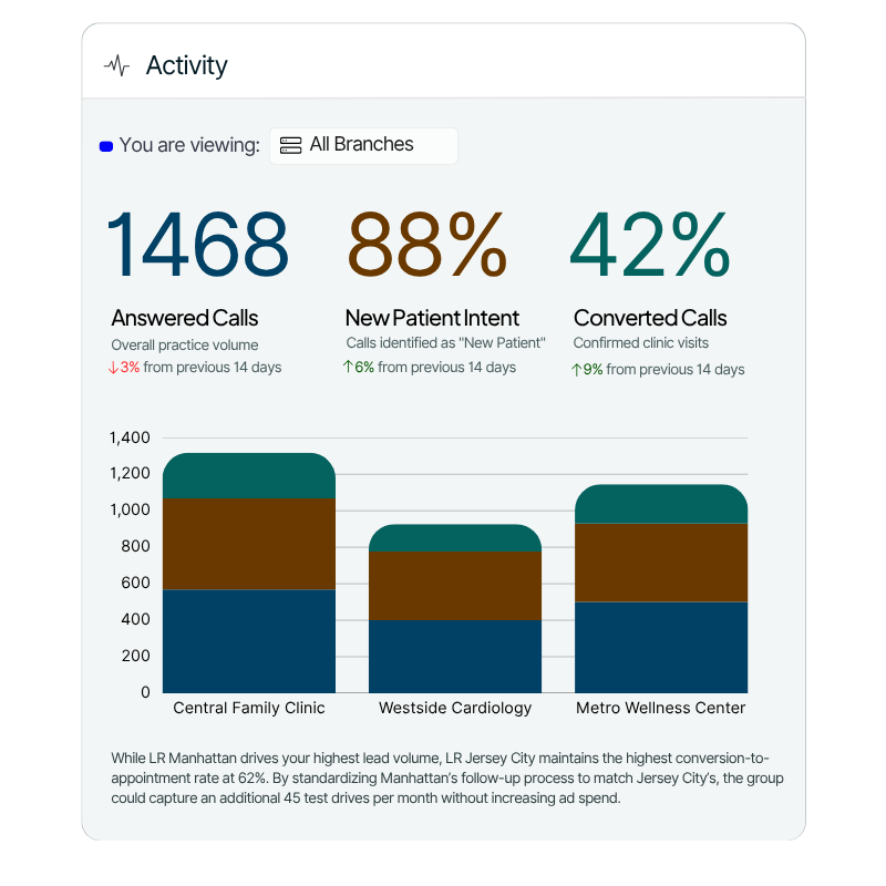 Understand which campaigns drive real appointments - by specialty, location, or service line - and which ones just inflate your numbers without filling your schedule.