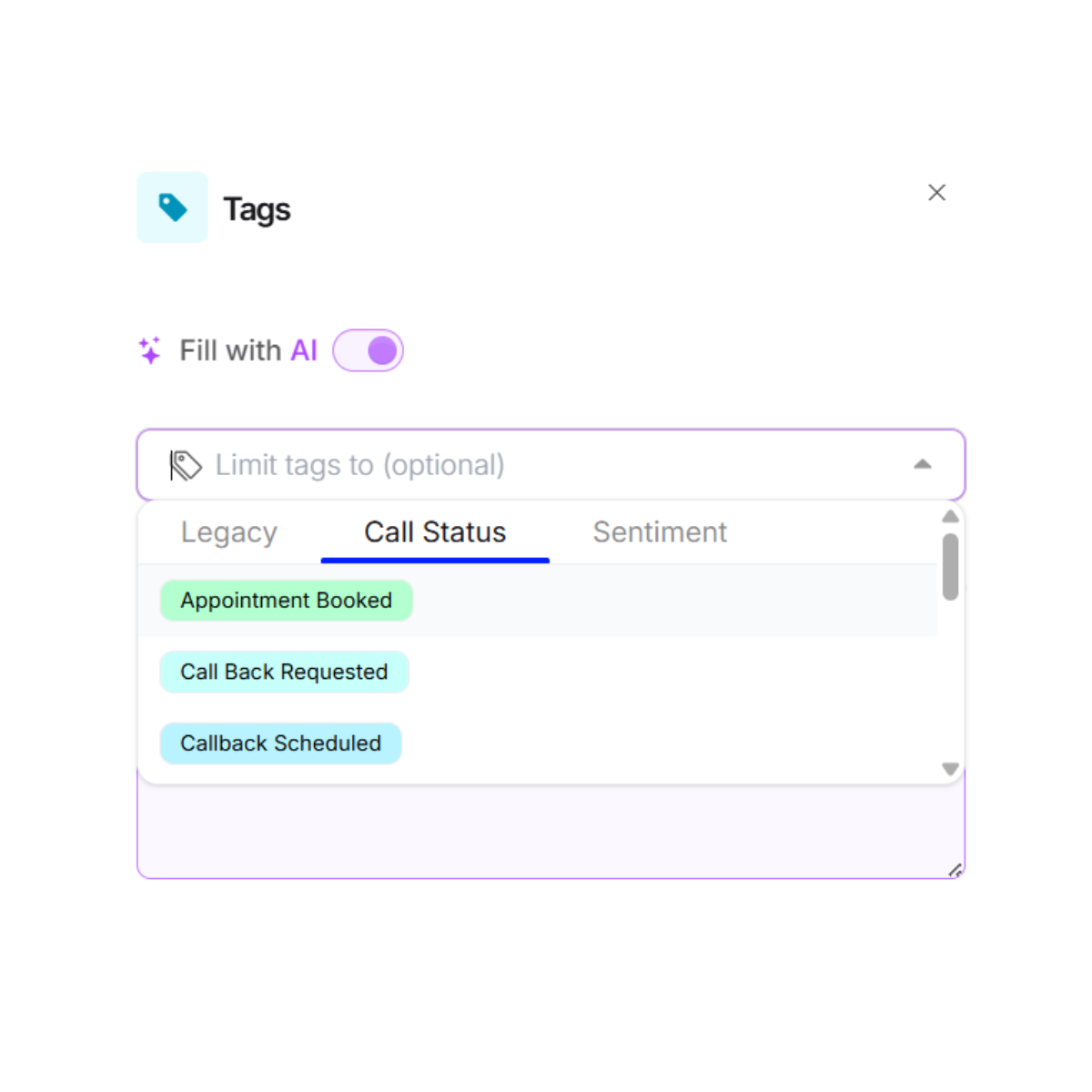 Call SummariesDefine custom tags like "qualified lead", "wrong number", or "duplicate call" to know instantly the lead quality.