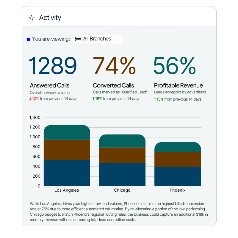 Run multiple advertisers, niches, and campaigns without the chaos. Assign tracking numbers, route calls, and pull reports - all from a single dashboard.