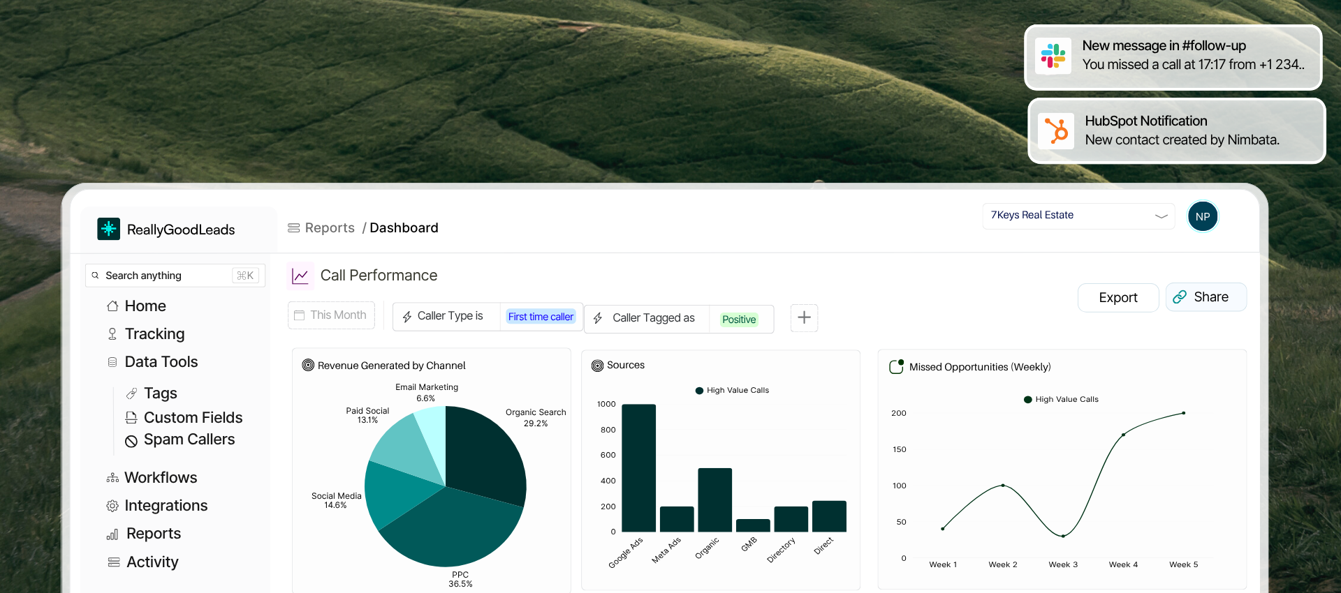 Get instant Slack notifications for missed calls, qualified leads, or key updates.